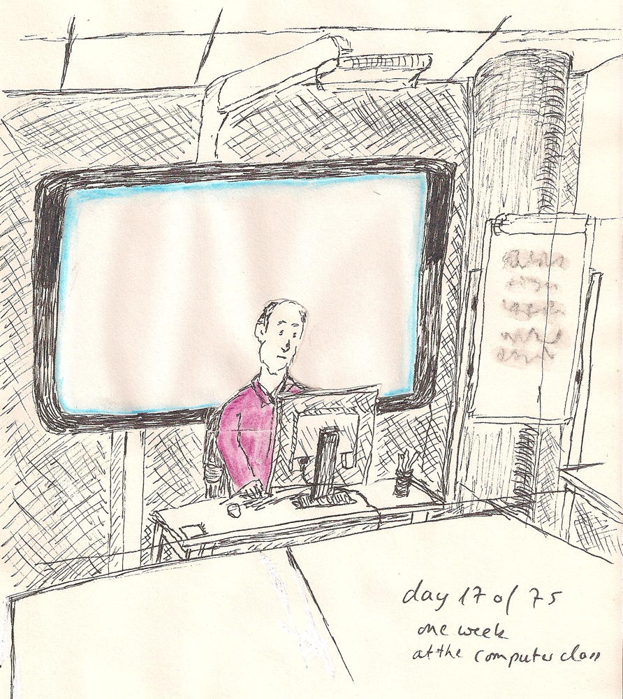 At the computer class #17of75computer class Every day of the whole week I was looking at this man sitting behind his computer while teaching some computer stuff. Share this: Click to share on Facebook (Opens in new window) Facebook More Click to print (Opens in new window) Print Like Loading... Related