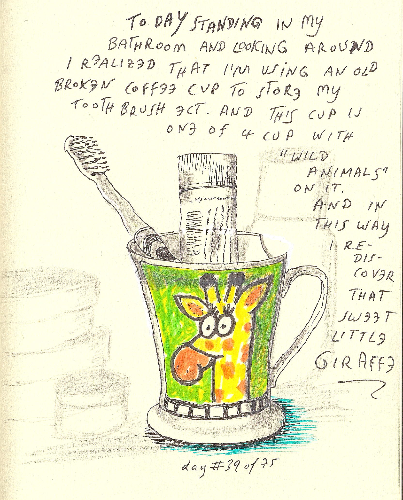 Giraffe’s Alway There day#39 of 75giraffe feb#4giraffe’s alway there journal page in pen/ink, colored markers and pencil/water-color Share this: Click to share on Facebook (Opens in new window) Facebook More Click to print (Opens in new window) Print Like Loading... Related