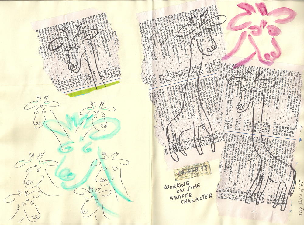 Giraffe Character day#51 of 75giraffe character I just play a bit with a simple little giraffe… journal page with pen/ink and pencil/water-color Share this: Click to share on Facebook (Opens in new window) Facebook More Click to print (Opens in new window) Print Like Loading... Related
