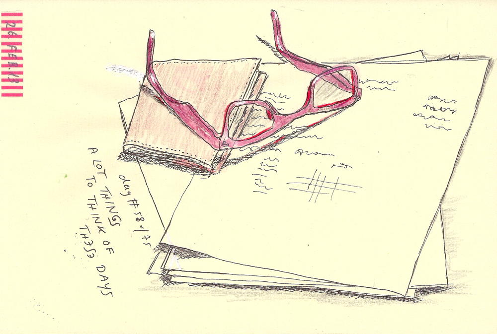 To Think Of day#58 of 75to think of There are a lot of things to think of in these days and a lot of problems to solve or – I should say – to deal with. journal page with pen/ink and pencil/water-color Share this: Click to share on Facebook (Opens in new window) Facebook More Click to print (Opens in new window) Print Like Loading... Related