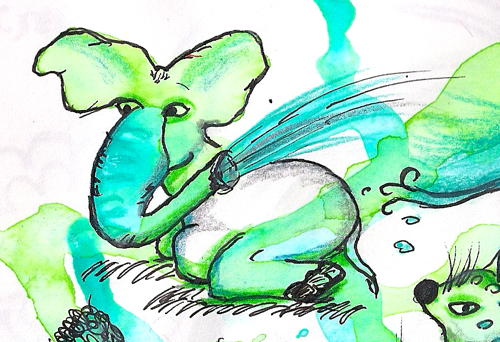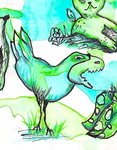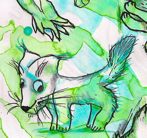 while sitting on the train which takes me to the office i play with a prepared blobground to find new creatures. this is after taken a class with Carla Sonheim …