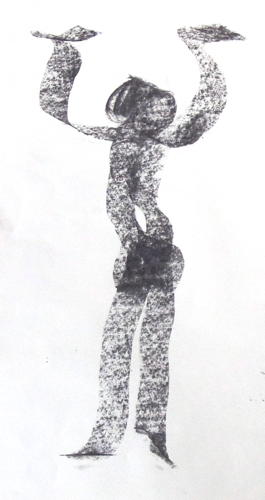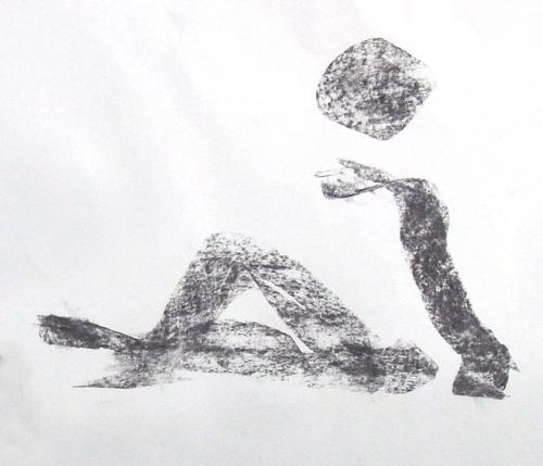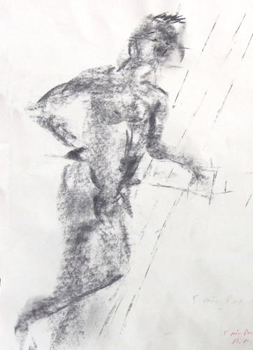 To start with the day we draw lots of 5 min pose. With a big piece of charcoal I found some nice abstractions. But I did them in less than a minute to get to the finished drawing that I like.