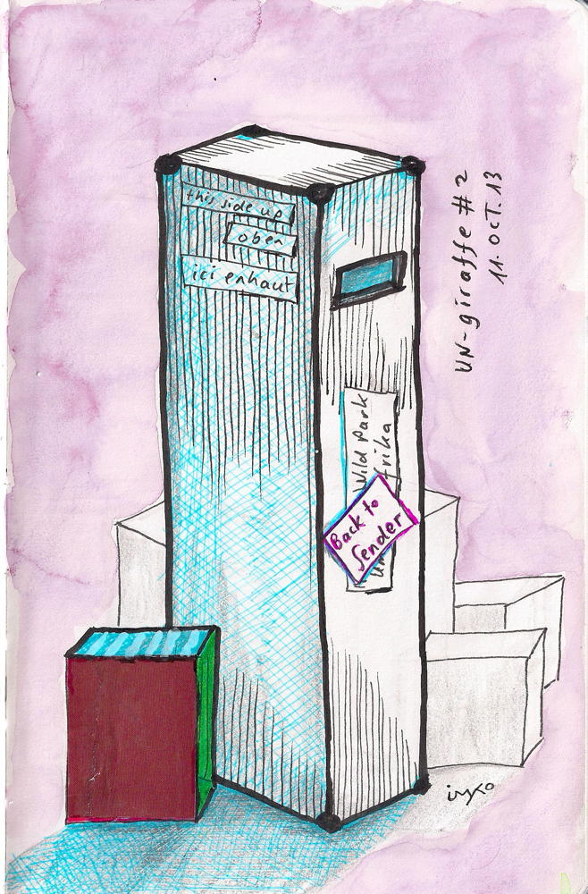 UN-giraffe For the 2. week I was asked to create an UN-giraffe – what ever… so let’s see my invisible (“UN-sichtbare” as we say in German) giraffes. That’s the best I could imagine! un-sichtbare Giraffe (=invisible) #1 un-sichtbare Giraffe (=invisible) #2 Share this: Click to share on Facebook (Opens in new window) Facebook More Click to print (Opens in new window) Print Like Loading... Related