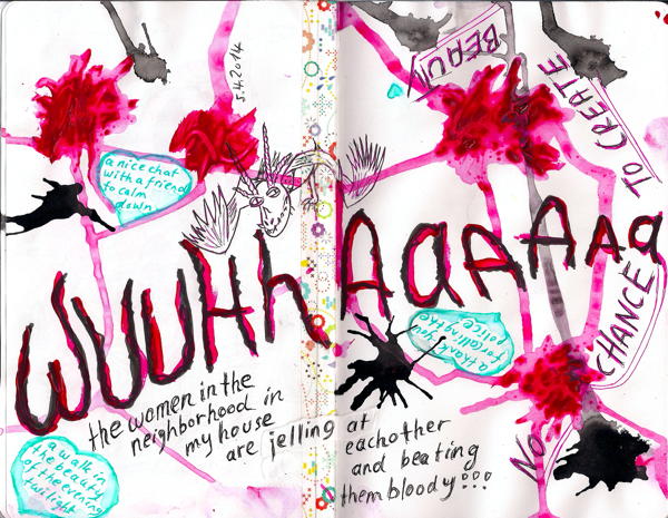 Darf ich auch die dunkle Seite zeigen? Das ist, was ich will: ich will meine Gefühle ausdrücken, selbst wenn ich Angst fühle. Heute wurde ich in einen Kampf zwischen zwei Nachbarinnen in meinem Haus verwickelt. Gerade als ich mich in meine kleine Fantasiewelt zurückziehen wollte, um fantasievolle Prinzessinnen und Erbsen zu malen… Das war’s!