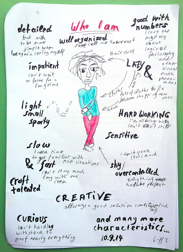 Now in September Carla Sonheim had given a bonus lesson at “Life Book 2014” and introduce us to her working theory about “Finding your Voice”. She adds two more views to the well-known advises and suggested that you find your style in the overlap of three different views.