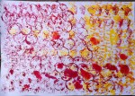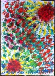 Well, all my paintings from the class ‘Bloom true’ in February 2014 are not finished untill now. They are still waiting for me. But this week I took on the challenge of Flora’s lesson for Life Book 2014 “Brave intuitive painting – no brushes needed”.