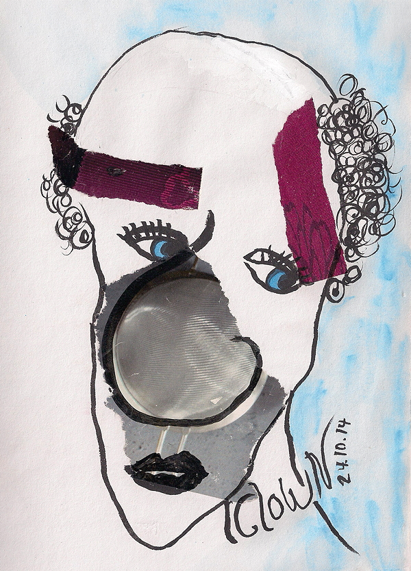 clown Good morning. Daily practising my morning pages: imaginary faces based on random scape paper. Share this: Click to share on Facebook (Opens in new window) Facebook More Click to print (Opens in new window) Print Like Loading... Related
