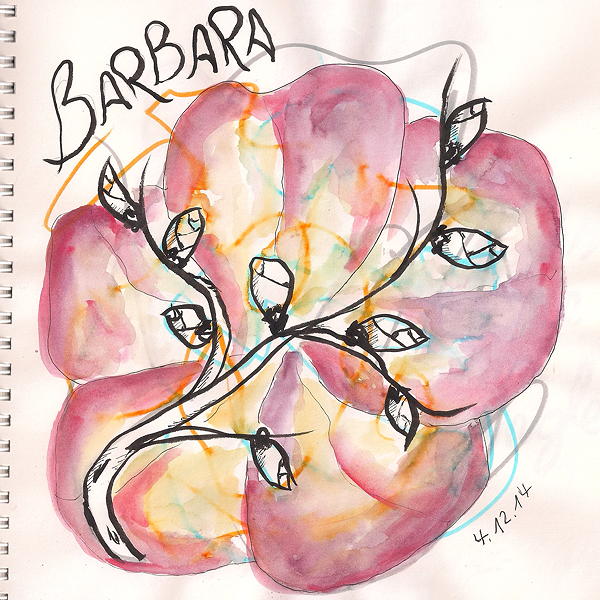 Inspired by the meaning of the day related to St. Barbara: imaginary bench based on randomly scribbled lines … sort of ruined through the bloom-painting … still unfinished