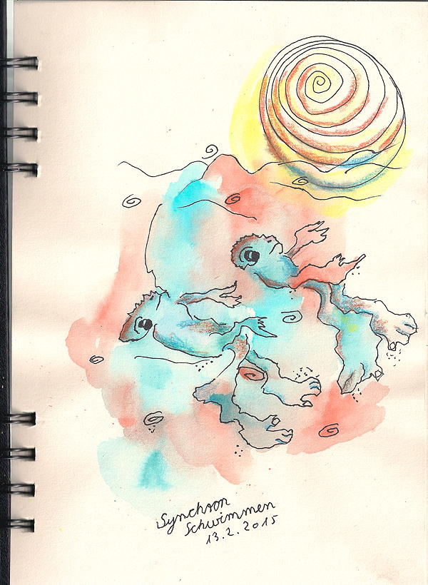 synchronised swimming Imaginary creature based on random blob shape: water-color, black fine liner, colored-pencil…. Share this: Click to share on Facebook (Opens in new window) Facebook More Click to print (Opens in new window) Print Like Loading... Related