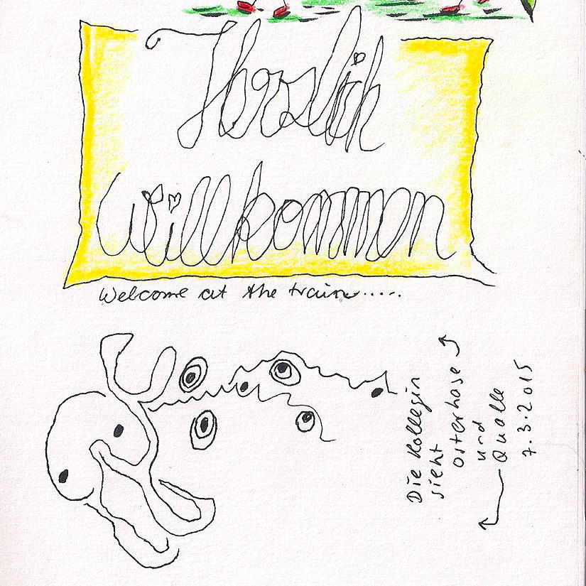 Bunny On the train to art school my class mate suggested it could be an easter bunny or a jellyfish… I was not in the mood to continue this drawing. Share this: Click to share on Facebook (Opens in new window) Facebook More Click to print (Opens in new window) Print Like Loading... Related