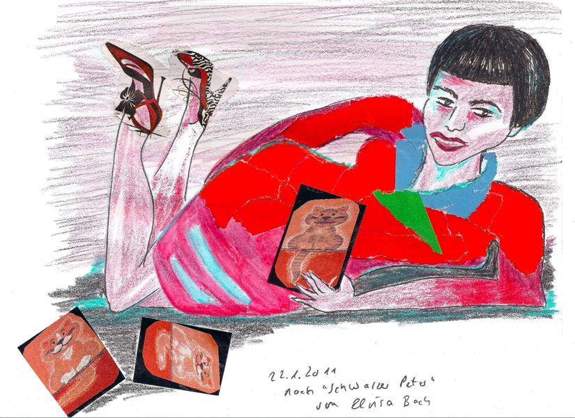 Variation of the painting “Schwarzer Peter” from Elvira Bach. She is a contemporary painter in Berlin/Germany. Mainly she paints ‘neoexpressinistic’ (wikipedia used this word to discribe her style) images of women. Watch her amazing paintings on her website.