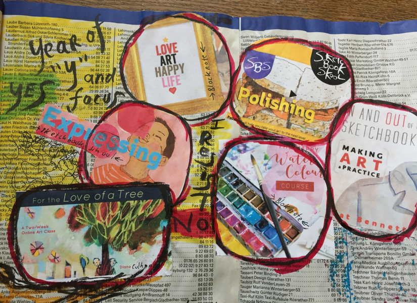 Only 3 month are gone of the year and I had resisted already a huge bunch of online classes. I’m so proud! I focus and go for “‘Y’ ist for Yellow” with Carla Sonheim in 2016.