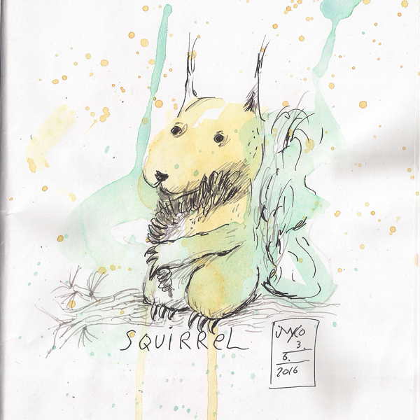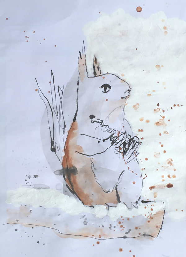 Squirrel At the workshop about animal drawings we worked mainly with stuffed animals. So guess what picture was in my subconscious when I found the squirrel in my blob… Share this: Click to share on Facebook (Opens in new window) Facebook More Click to print (Opens in new window) Print Like Loading... Related