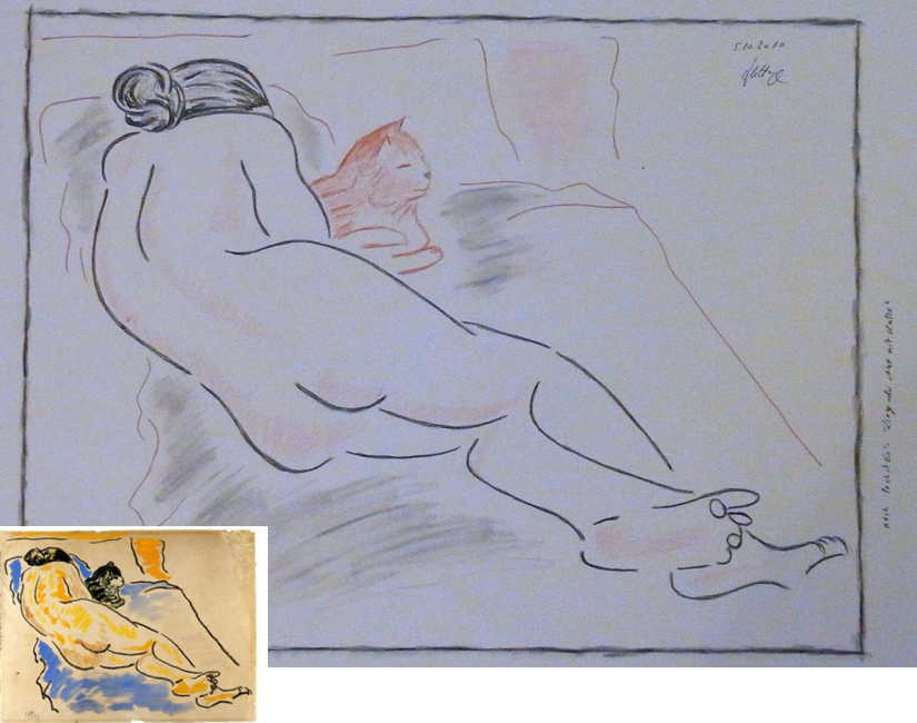 The impulse to a series of “master copies” was the discussion around an oil painting which was called an art heist – the original is an aquarelle painting from Max Pechstein. I did some more figure drawings (no tracing) at the End of 2010.