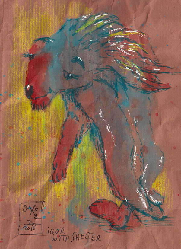 Igor i have a hedgehog in my garden. maybe that inspired me working on this morning blob… (and it’s still difficult to work on this dark paper) Share this: Click to share on Facebook (Opens in new window) Facebook More Click to print (Opens in new window) Print Like Loading... Related