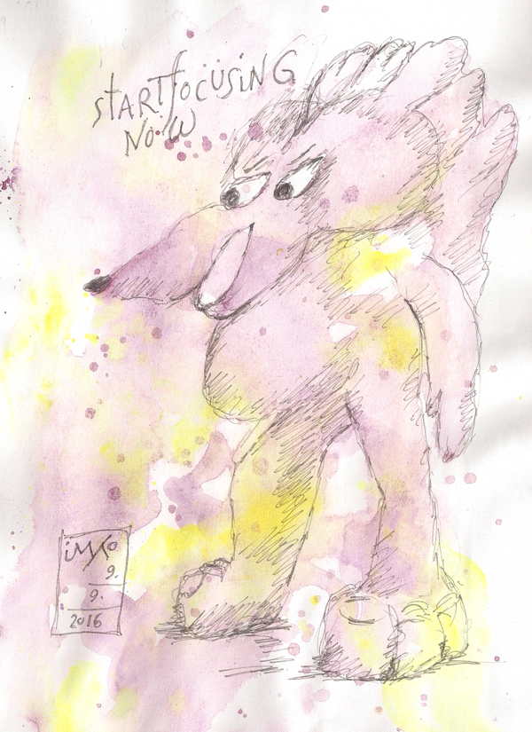 Focus, now! I was a bit lazy with my drawings though untill the point that I didn’t get one stroke done… My creature knows that and try pushing me through. Share this: Click to share on Facebook (Opens in new window) Facebook More Click to print (Opens in new window) Print Like Loading... Related