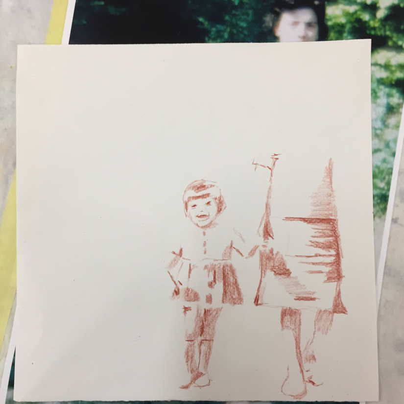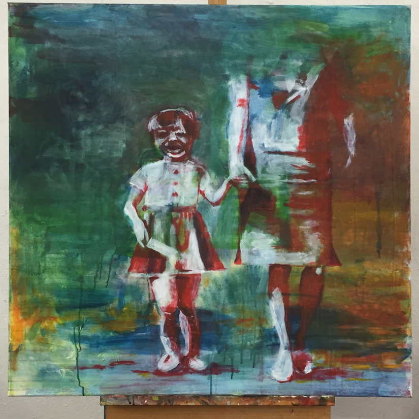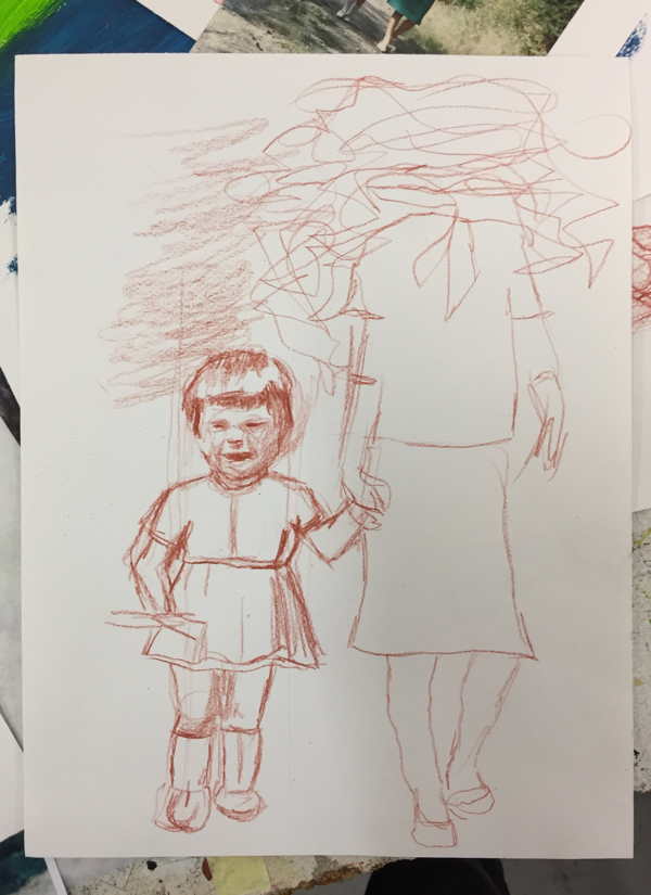I actually love the photo (not shown here) and the story in it. But when I sketched it to prepare the painting I couldn’t draw the face of the adult woman. Don’t ask me why. It’s hard and weird. And I decided to painting the scene with focus on the child and leave a part of the woman.
