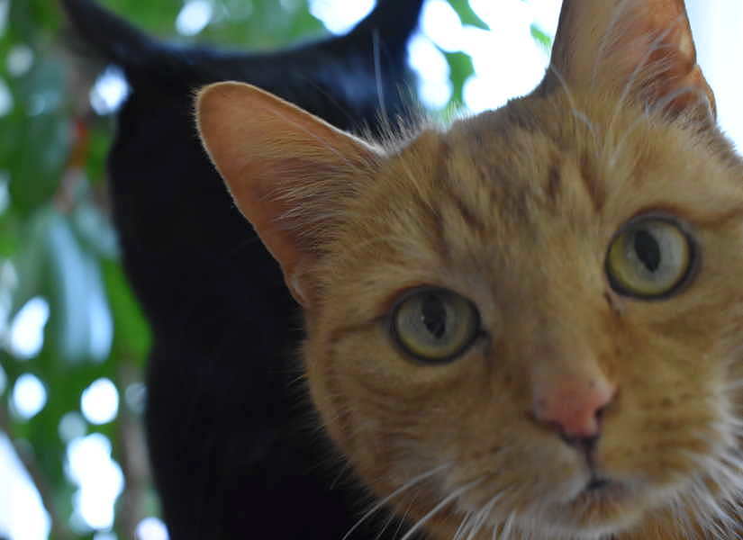 To become familiar with the camera I’m trying to catch the black cat which is mostly impossible. It’s mostly impossible because it is black and appears most of the time as its shadow. Today this problem had reach a new dimension: the red fat cat popped its face into the picture…