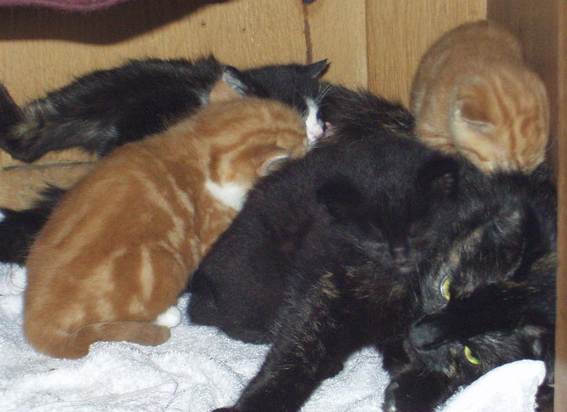 Today I have the little story about the beginning. Back then in April 2003 a little cat called Daphne, or short Daffi, gave birth to four little critters.