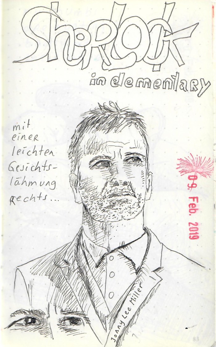 Well, I did the right eye much too low. I’ve laught at myself “Sherlock with a slightly facial palsy on the right side”. And I used the left corner to draw the eyes correctly.