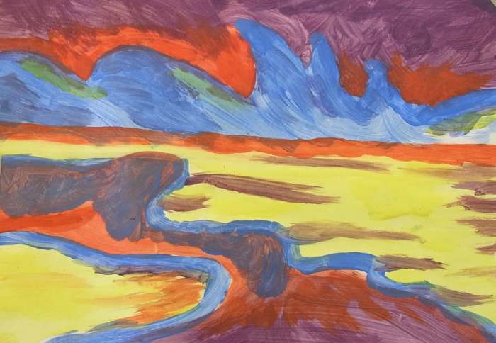 I painted two and a half hour, then I turned it upside down and some kind of people approved on the left side – I was thrilled! (app. 65 x 50 cm)