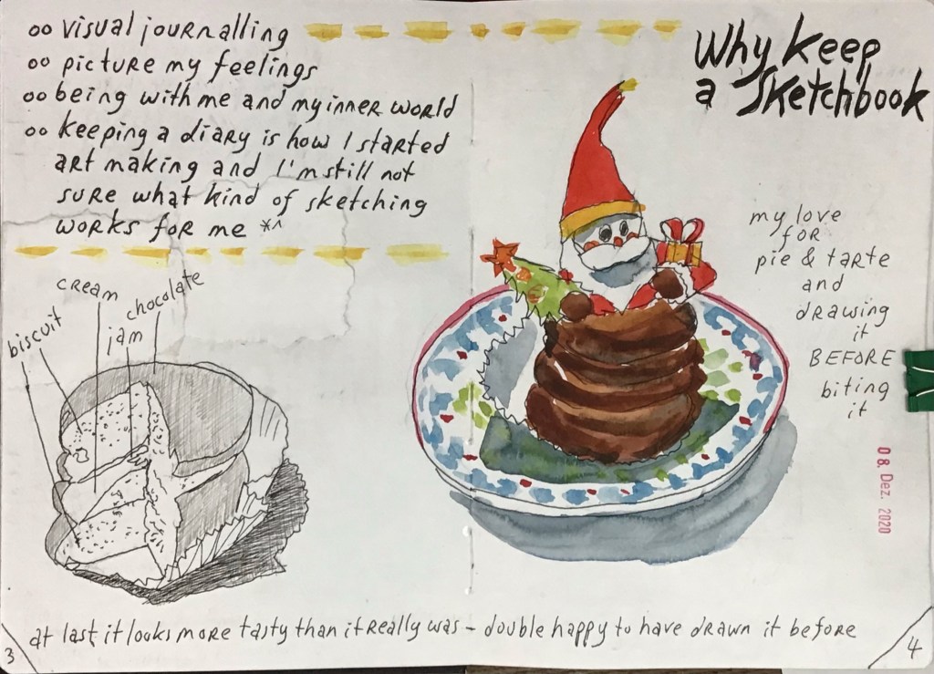 I took on a lot of challenges and joined the class “Sketchbooking” with Lewis Rosignoll. Especially the lesson about the grid drawing reminds me of a practise that I followed years ago at the time when I first started with visual journalling. I love that.